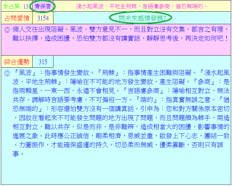 ◎男占問與女友未來的感情發展? (99.07.14.占)