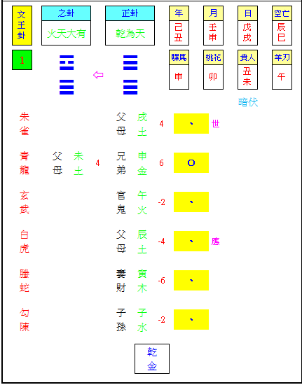 ◇五爻忌神兄弟發動沖寅木妻財,間爻阻礙,無法得財。