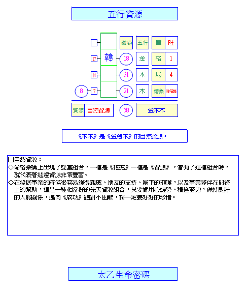 ◎韓老闆之命格架構,具備哪一類的資源?
